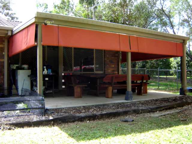 Not Just Canvas can show you a huge range of colours and fabrics for patio and cafe style blinds in our factory at D'Aguilar.